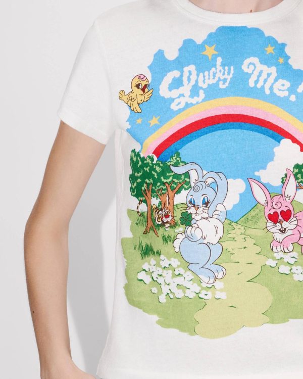 From the whimsical world of the Autumn/Winter 2025 fashion show, this classic-cut T-shirt features the love affair between Luke (‘Lucky Me’) and K@li (‘Lucky You’), two of this season’s iconic characters. The piece is enhanced by ‘Kenzo Archive’branding embroidered in satin stitch on the back.